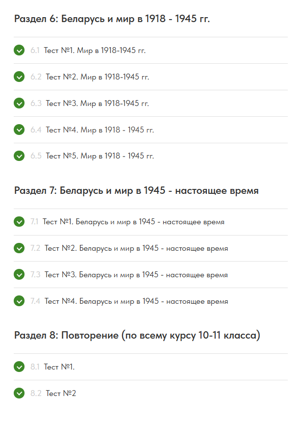 - Более 1000 вопросов и 30 вариантов (по всем разделам 10-11 класса) в формате ЦЭ/ЦТ по истории Беларуси в контексте всемирной истории и с каждым днем их всё больше!